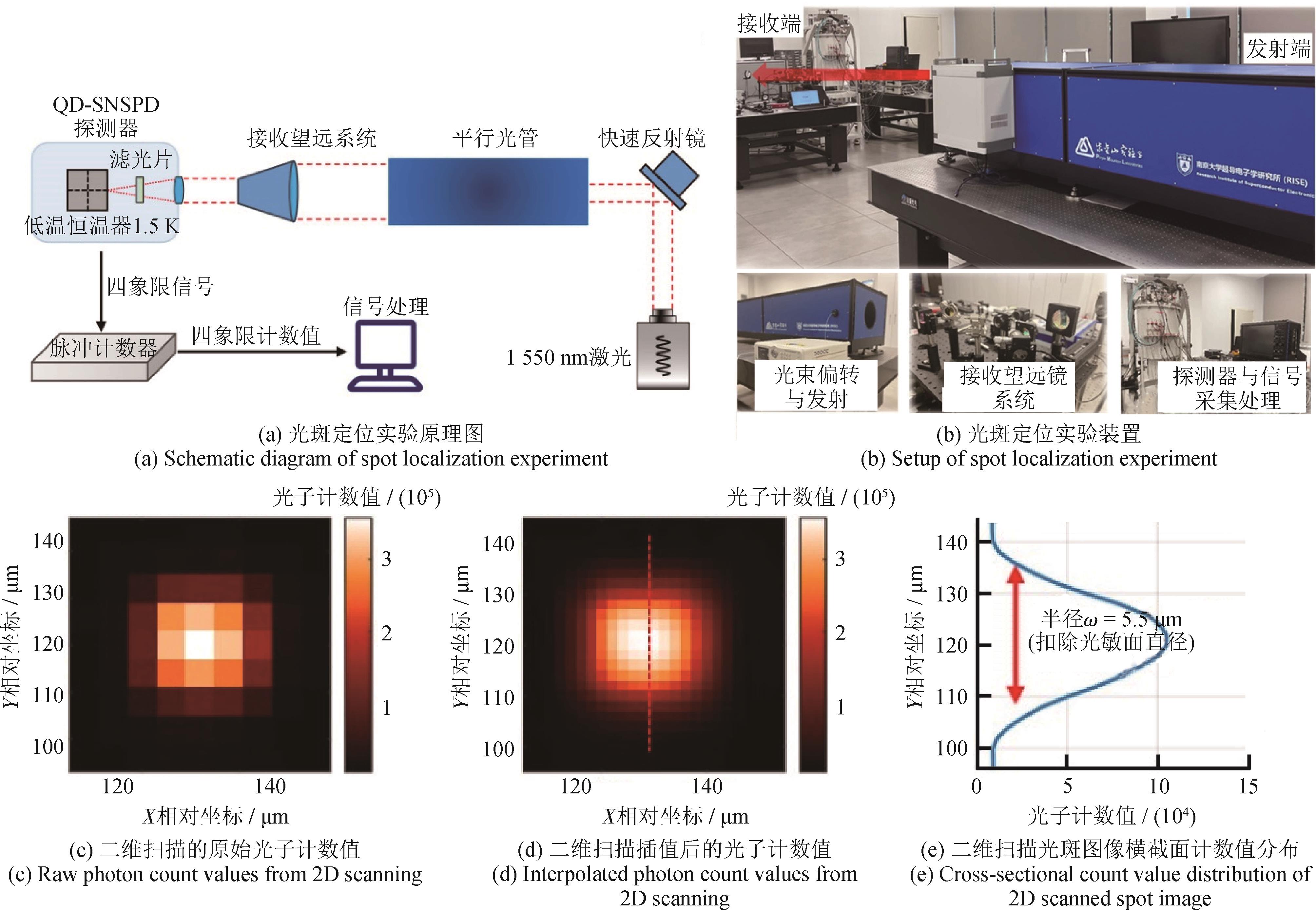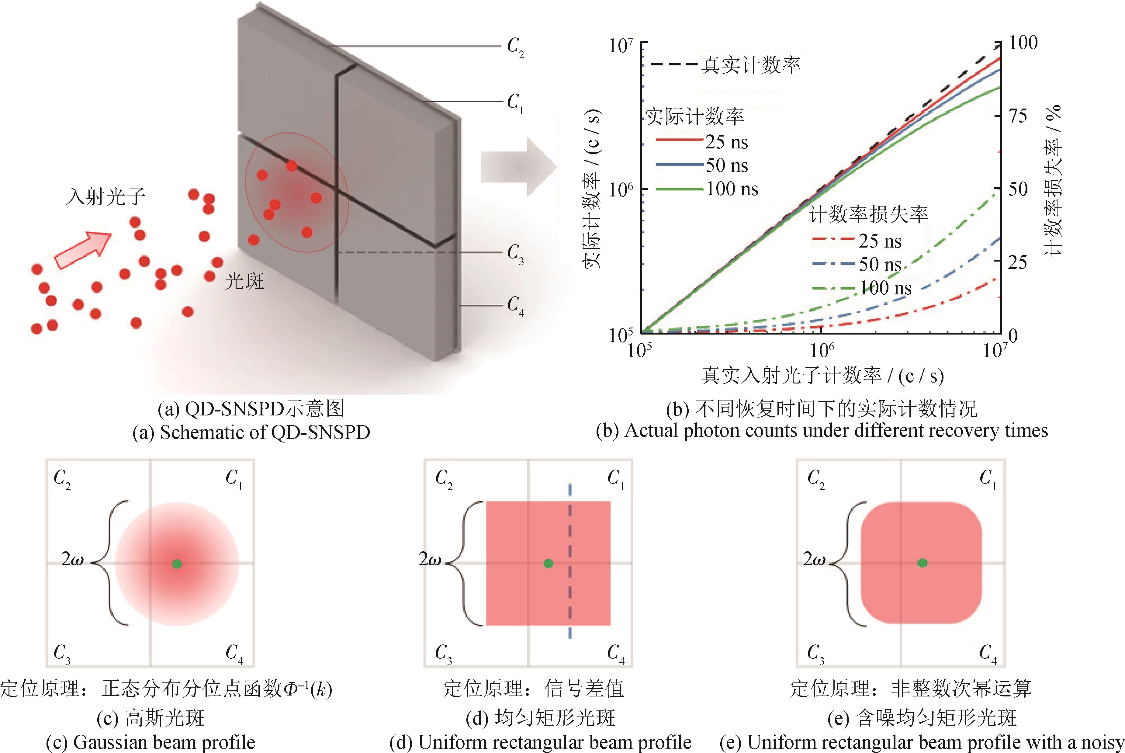 摘要:为解决四象限超导纳米线单光子探测器在高计数率条件下光子计数值失真及低信噪比条件下定位困难的问题,本文引入计数值非线性校正机制,推导校正后的高斯光斑定位解析解,提出非整数次幂运算和差定位的原创方法,通过指数