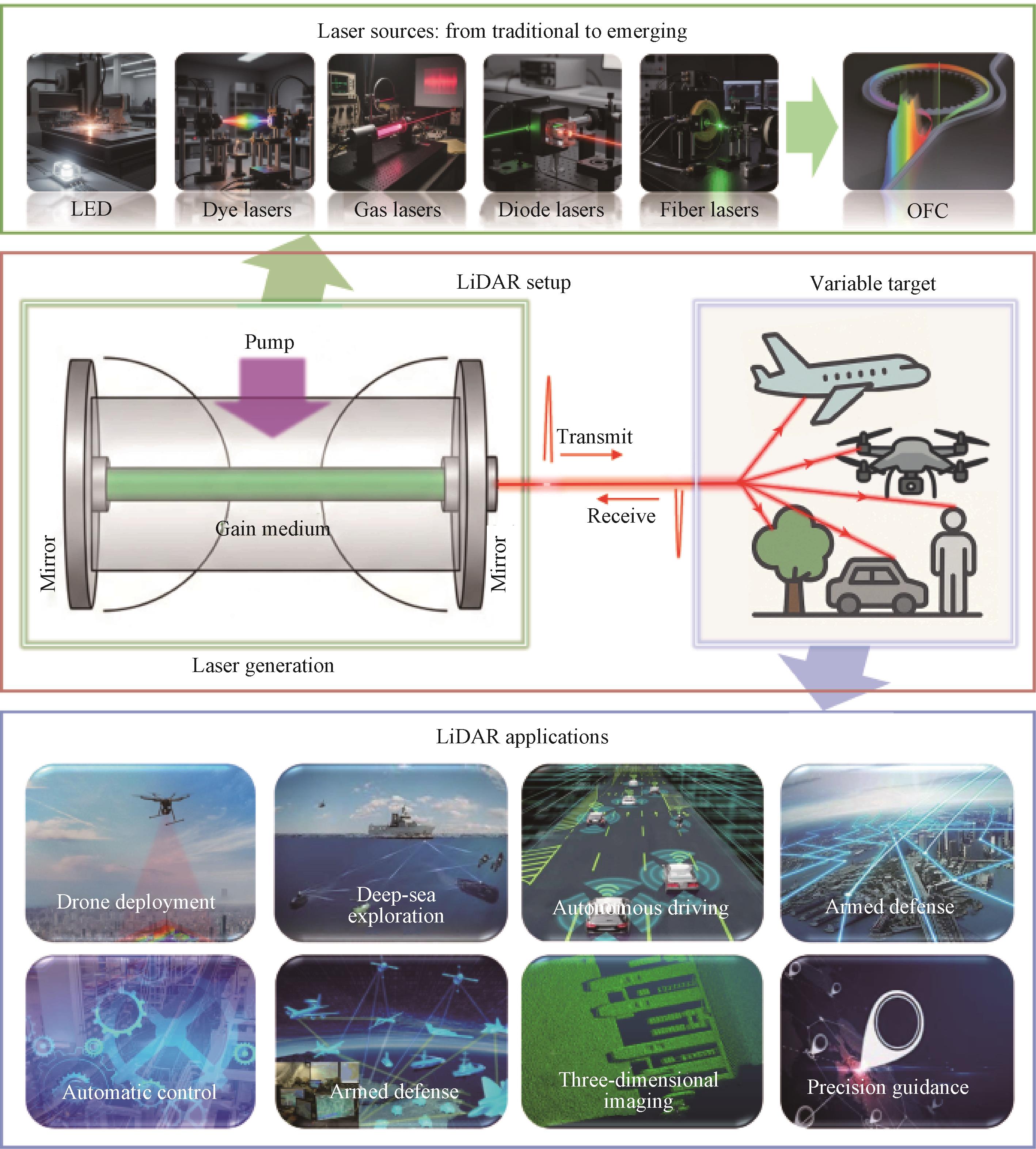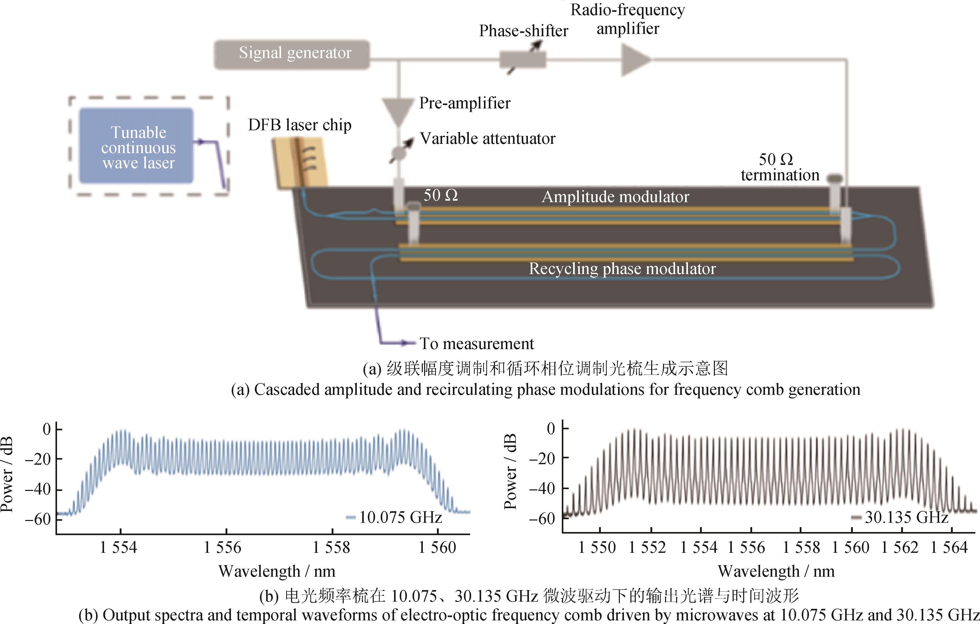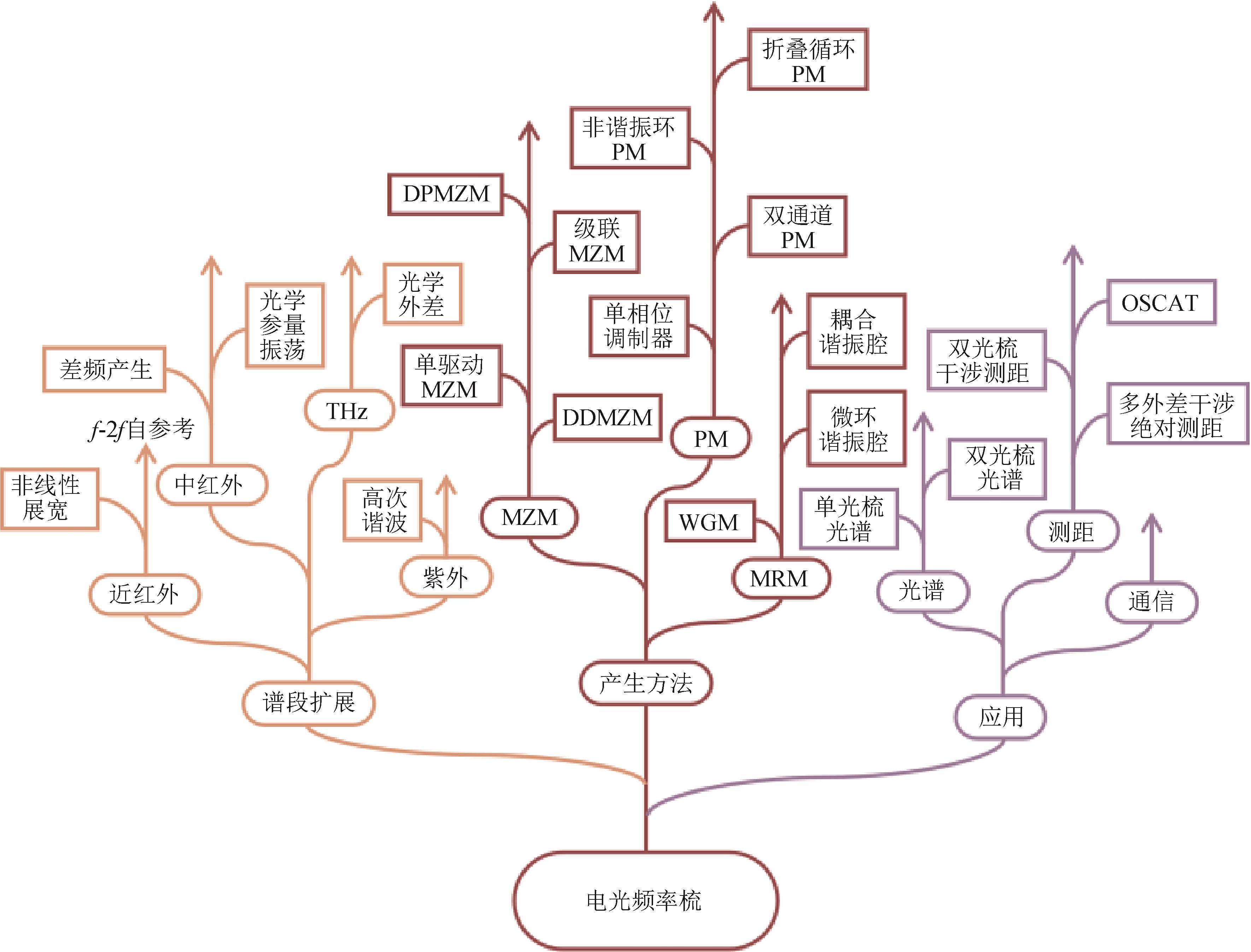 摘要:介绍了光梳的基本原理与分类,阐述了电光频率梳的产生机制及典型结构,系统梳理了基于薄膜铌酸锂、氮化硅等材料平台的电光频率梳实现方式与性能特点,涵盖马赫-曾德尔调制器、相位调制器以及微环谐振腔等方案。论述了电光频率梳的谱段扩展方法,总结了电光频率梳在光谱学、精密测距、光通信等领域的应用情况。展望未来电光频率梳技术的发展方向,指出可通过跨学科的技术融合与协同设计,进一步降低电光频率梳系统的控制复杂度、噪声敏感性、热漂移,提升系统的精度、抗环境干扰能力、稳频性能,推动电光频率梳在精密测距与相干通信等领域向实用化方向发展。