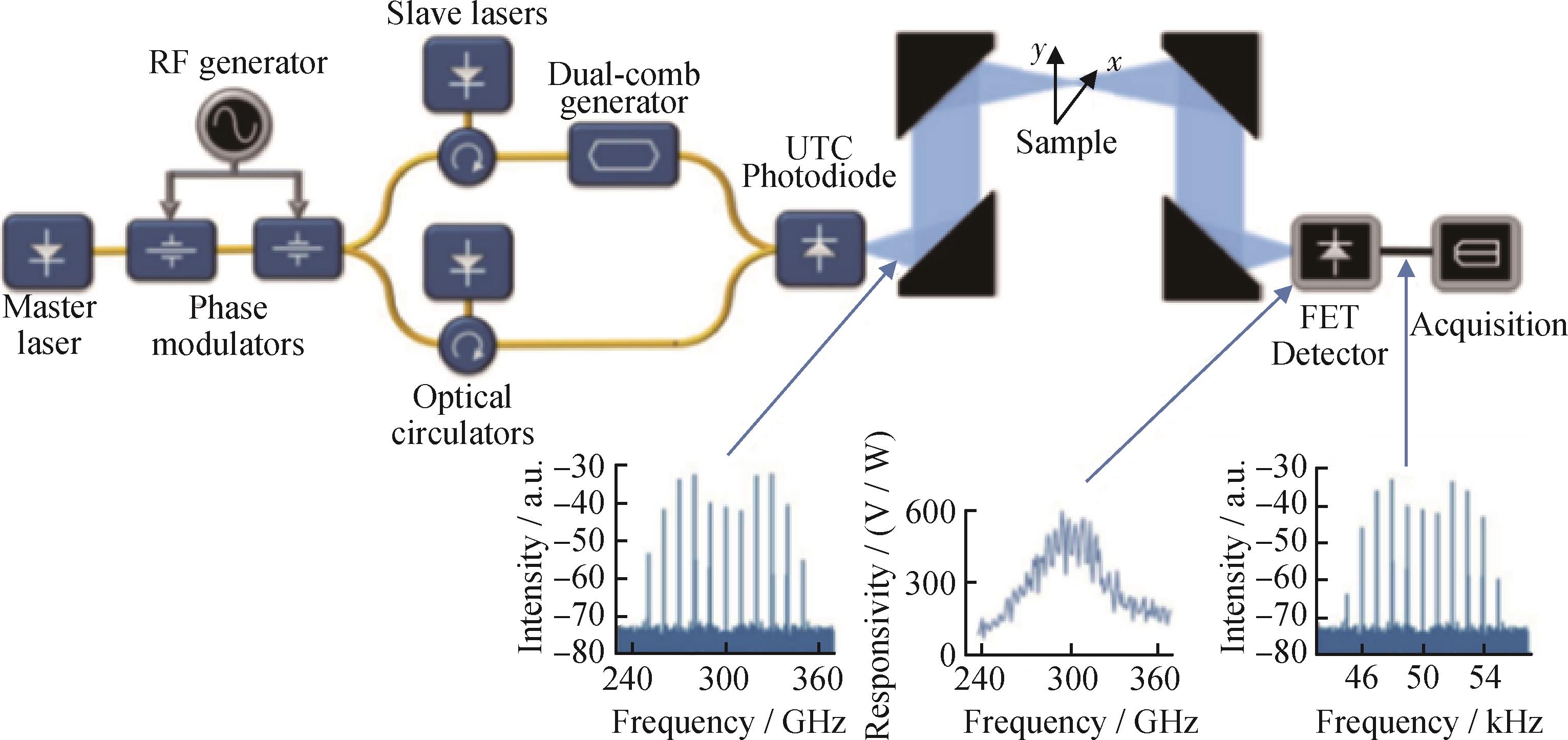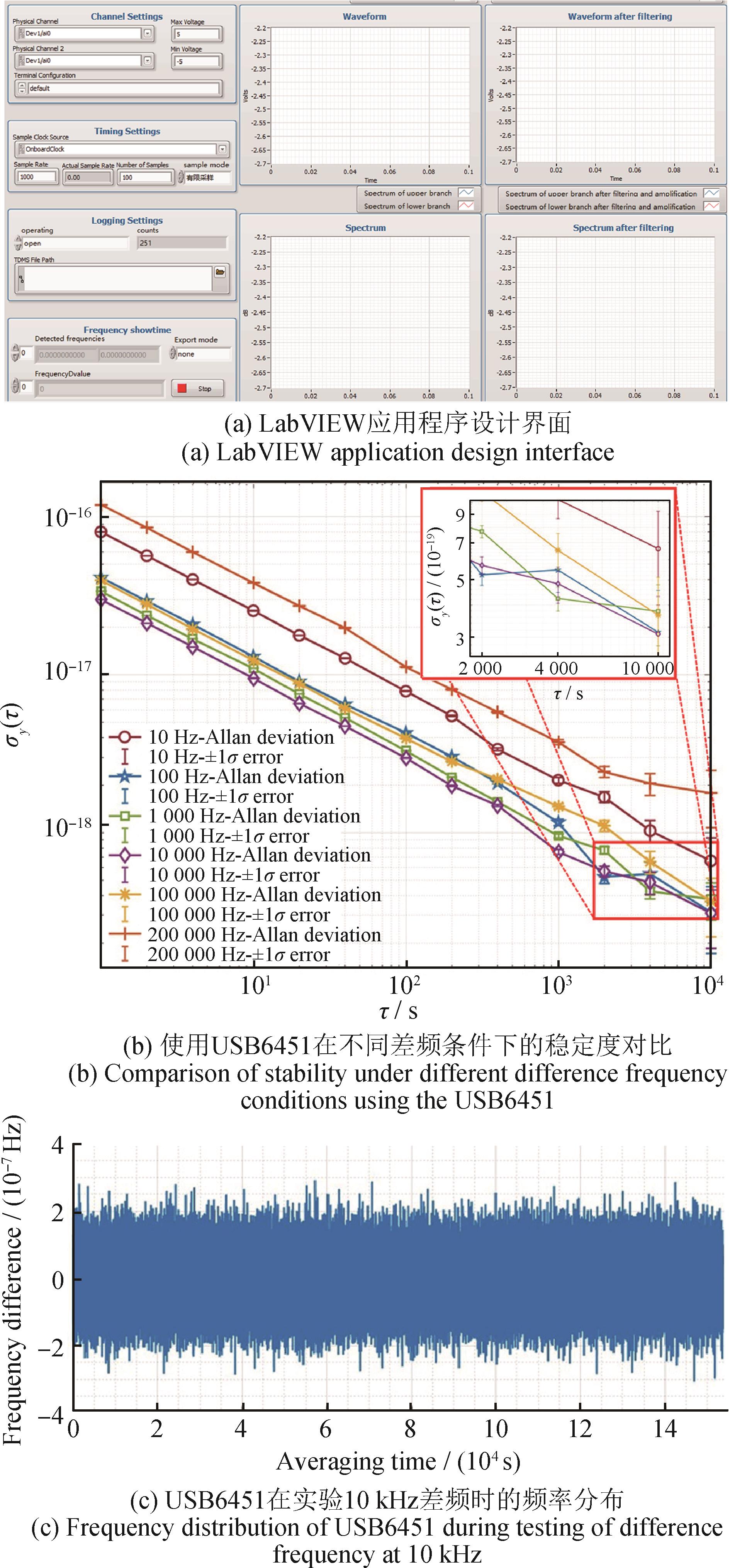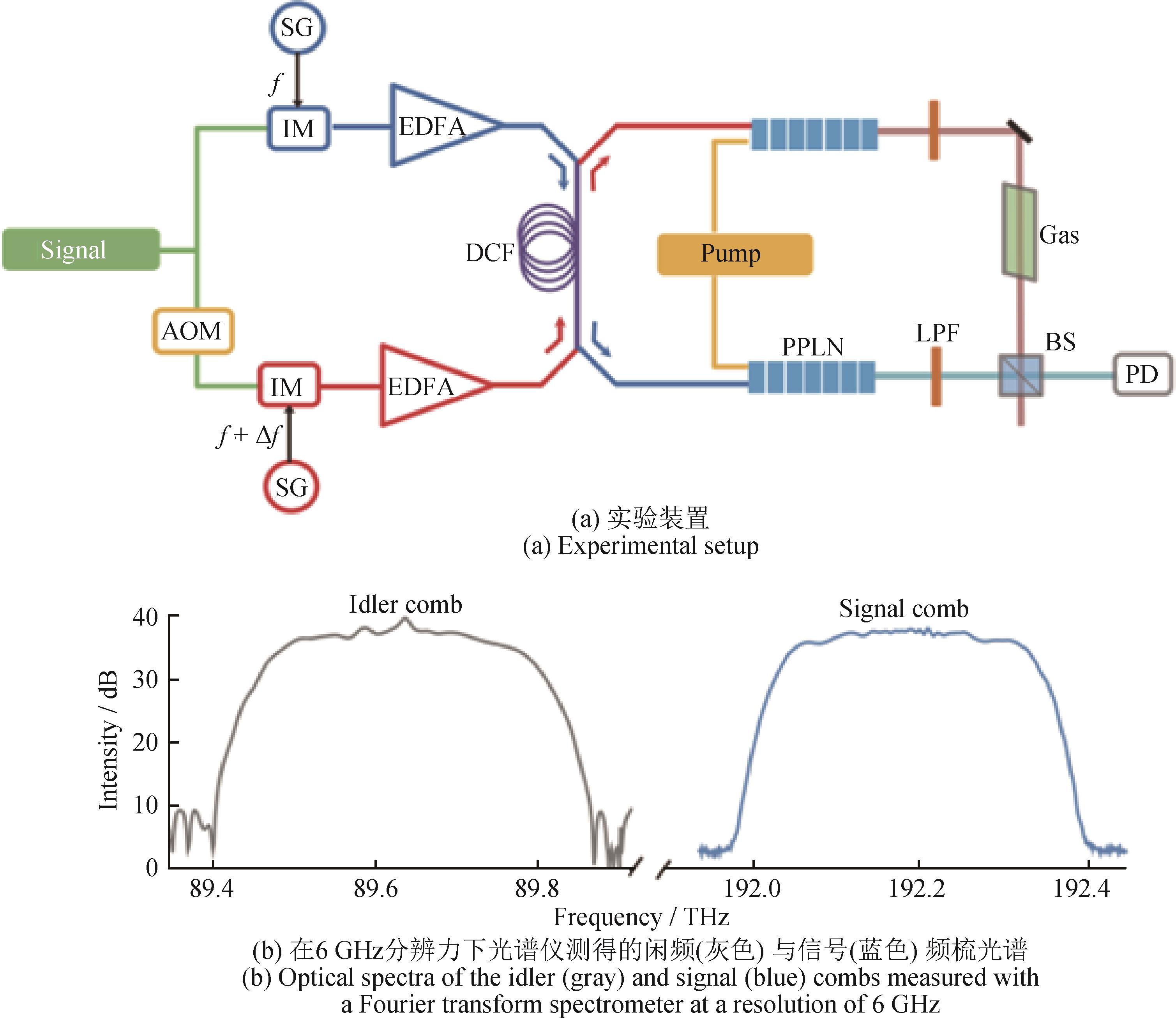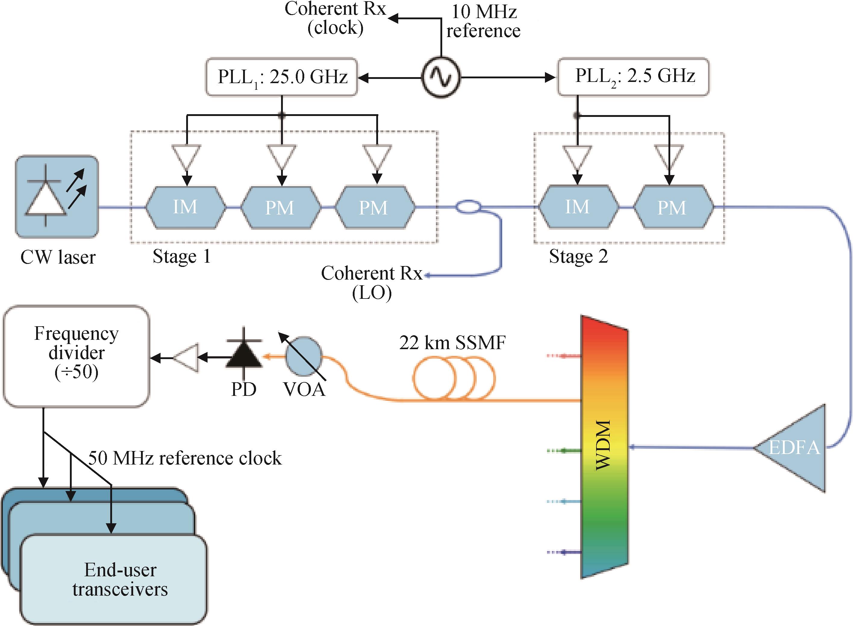 摘要:在超长跨距光纤频率传递过程中,功率衰减、有源器件带附加噪声等因素导致接收端频率信号微弱,限制了信号检测分辨率和灵敏度。针对该问题,本研究团队提出基于本振光增强的双混频时差微弱频率信号检测方法,通过相干激光器增强微弱载波信号功率,采用双混频时差检测结构以提升接收灵敏度,同时结合平衡探测技术实现高信噪比信号提取。实验结果表明:与传统的强度调制 / 直接探测方式相比,基于本振光增强的双混频时差微弱频率信号检测方法可有效提升接收端灵敏度约10 dB,在相同的入光功率条件下射频功率提升了25 dB;该方法实现了优异的频率稳定度,阿伦方差为2 × 10-13@1 s及2.1 × 10-15@10 000 s,在差频为10 kHz的条件下稳定度为3 × 10-17@1 s和3 × 10-19@10 000 s,验证了其在高精度光纤频率传递中的可行性与显著优势。