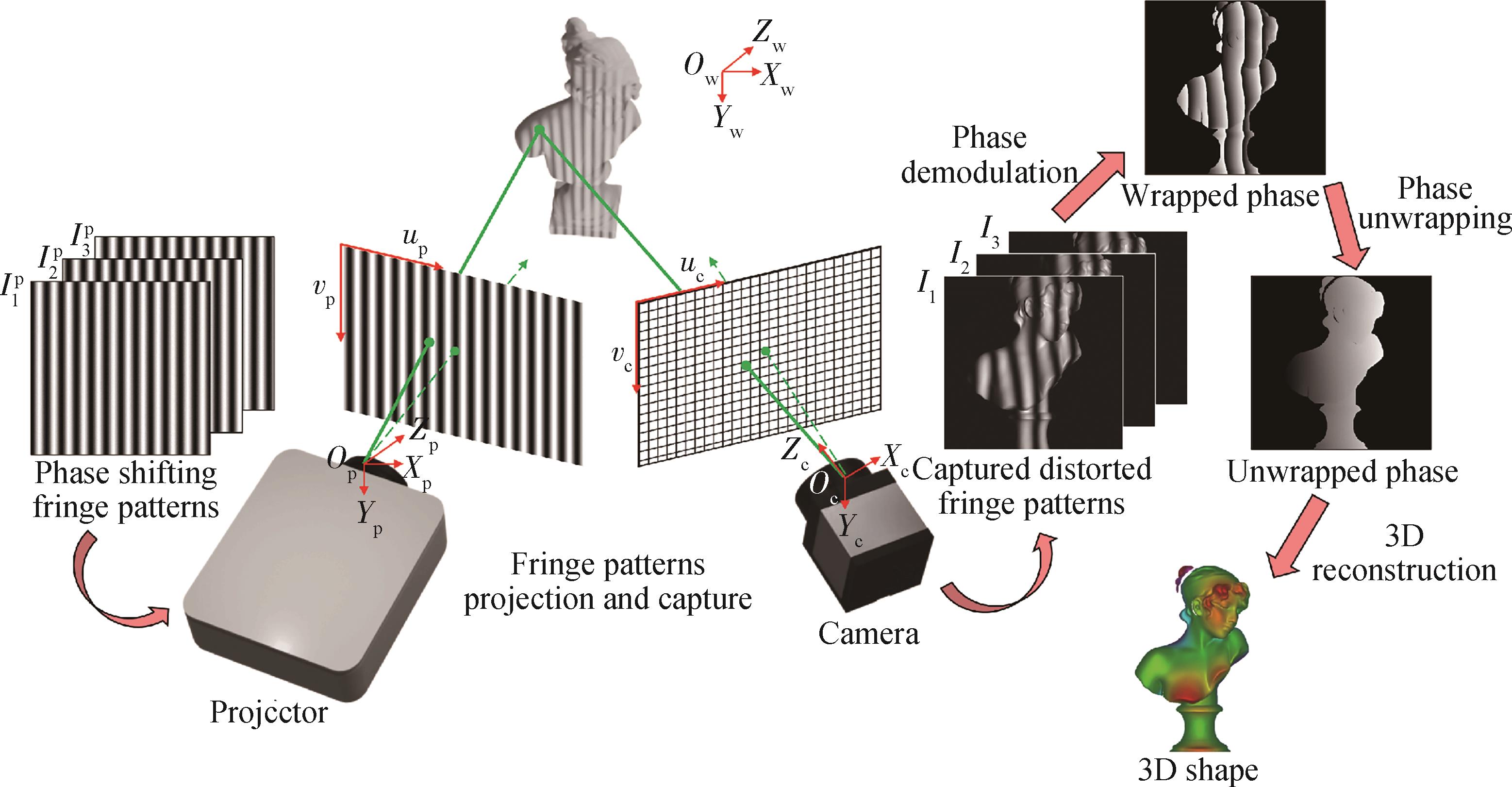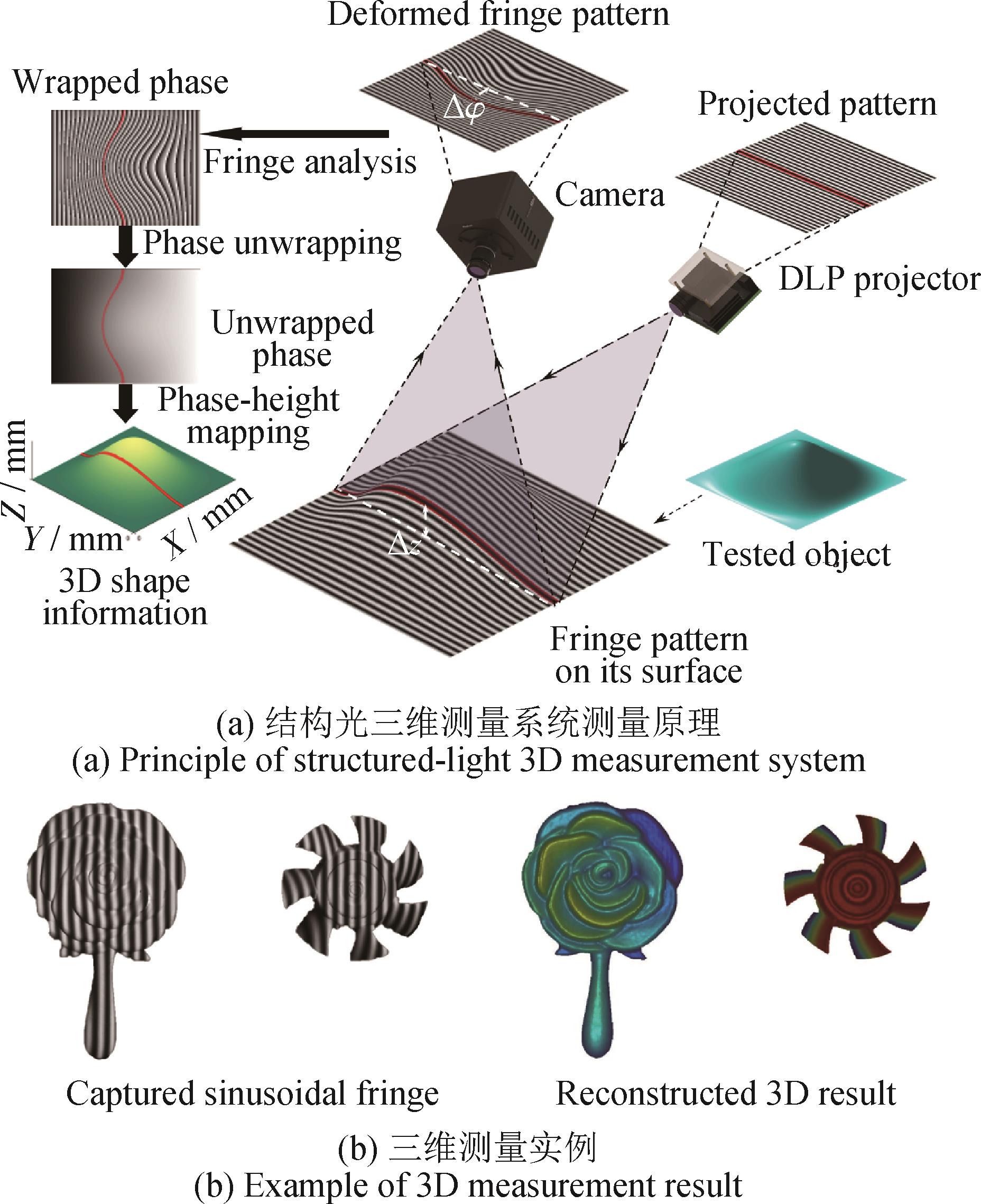 摘要:介绍了结构光照明三维测量技术非接触、高精度和高灵活性等特点,论述了基于条纹结构光照明的复杂场景三维形貌测量技术的原理和研究进展,重点阐述了本课题组为提升该技术的精度、效率而开展的一系列工作。分析了基于条纹结构光照明的三维测量技术在大尺寸化石断层平面、高动态范围工件、高速运动变化过程以及大口径光滑光学元件测量领域的应用案例,探讨了结构光照明三维形貌测量技术面临的挑战,指出未来可通过多学科深度交叉融合等方式进一步提升基于条纹结构光照明的三维形貌测量技术的精度和效率,突破技术瓶颈,实现多类型极端复杂环境下的高可靠性三维数字化测量。