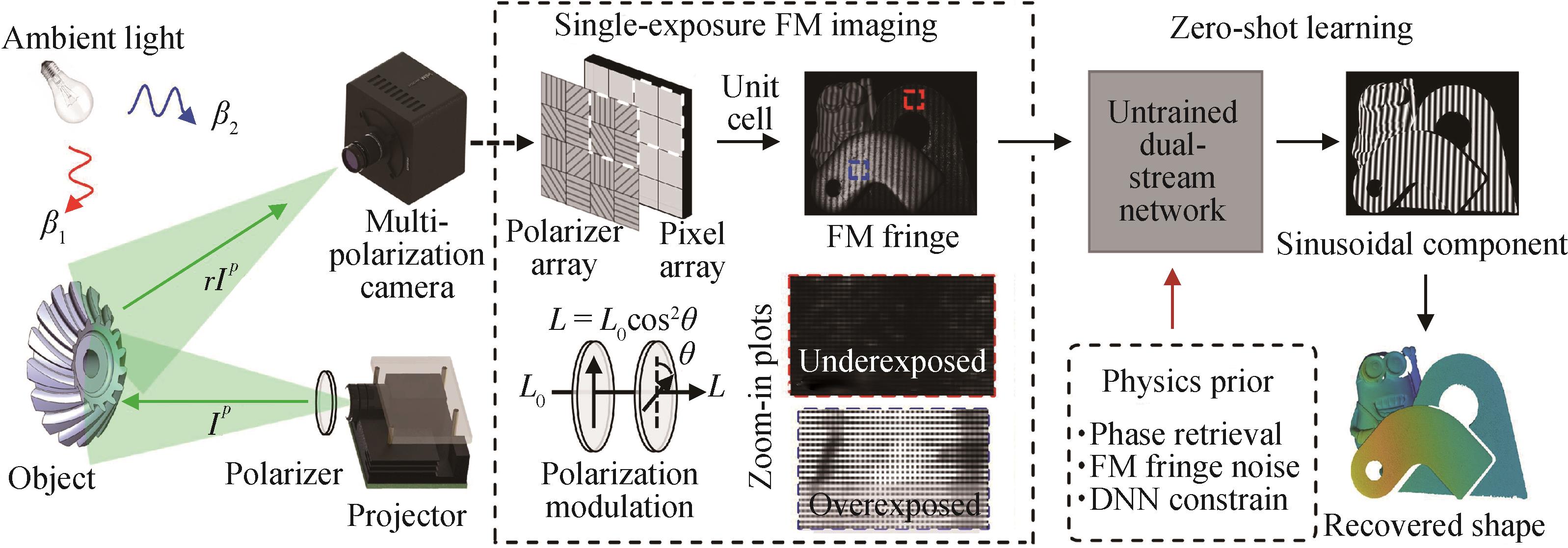 摘要:现有的全场谱域干涉技术依赖于波长或振镜扫描,制约了其单次探测全场信息的能力。针对该问题,本文提出了基于数字微镜设备的全场谱域干涉技术,通过数字微镜设备对空间光场分布进行编码,采集顺序加载掩膜对应的时变谱域信息,进一步解码得到空间各像素处的幅值响应,结合测量算法实现全场信息获取。实验结果表明:该技术能够有效实现高精度光谱干涉距离测量和光谱椭偏膜厚测量,且显著提升了全场测量效率。基于数字微镜设备的全场谱域干涉技术适用于稀疏表面的三维结构快速恢复和重建,为抛光晶圆、硅绝缘片及键合界面的厚度与形貌高效表征提供了有力支撑。