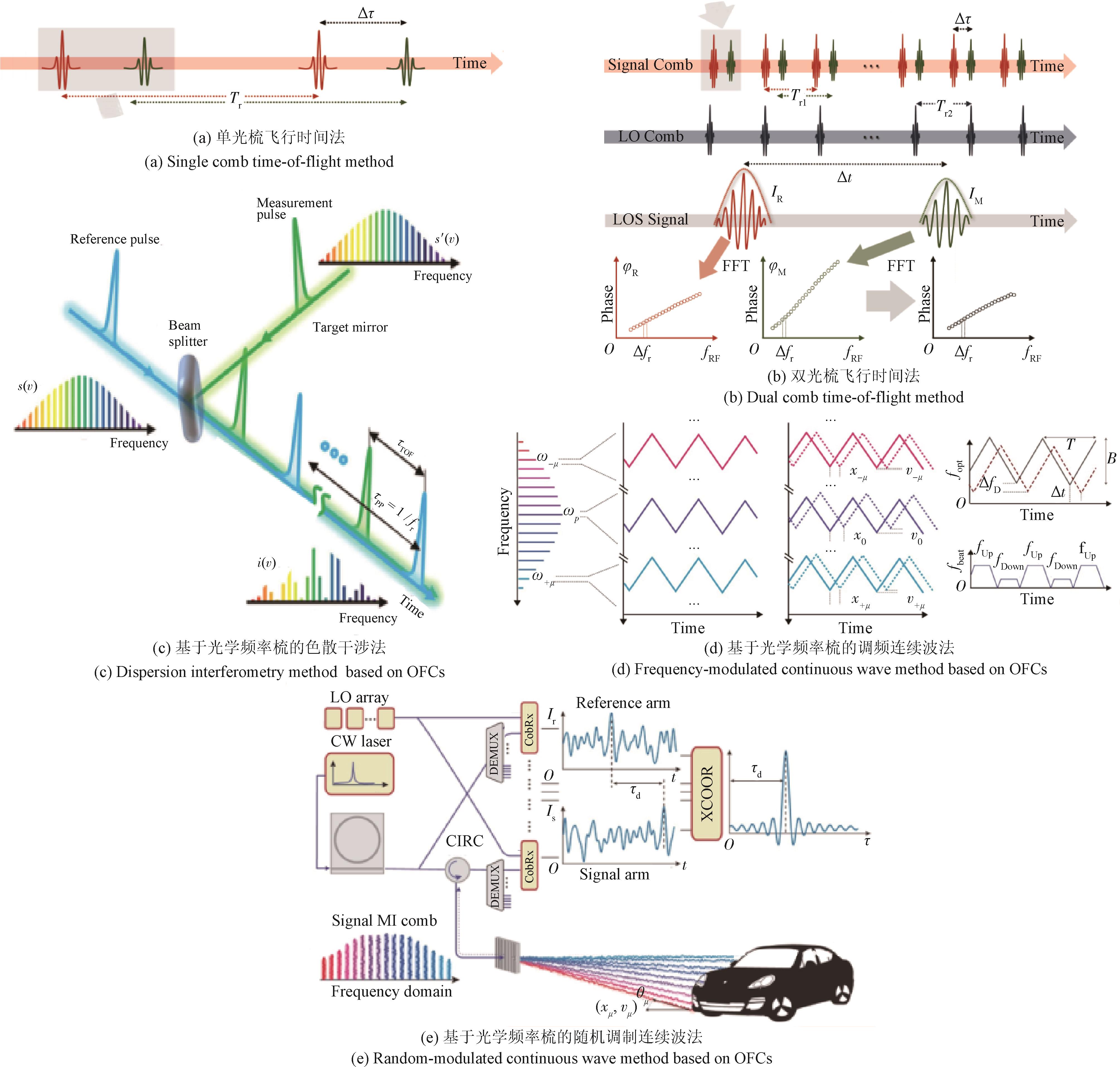 摘要:概述了光学频率梳的原理和特点,介绍了基于光学频率梳的激光测距技术精度高、速度快、探测范围大的优势,分析了基于光学频率梳的飞行时间法、色散干涉法、调频连续波法、随机调制连续波法等激光测距方法的研究进展。展望基于光学频率梳的激光测距技术未来的发展前景,指出可通过探索频梳测距的新物理机制,进一步拓展测量范围、提高更新速率、降低系统复杂度;可通过发展频梳稳定化和参数灵活化的新技术方案抑制噪声,进一步提升测量精度;可通过完善跨时标的漂移监测与自动校准机制、配置多参量环境感知与在线折射率补偿链路等方式,提升基于光学频率梳的激光测距技术的实用化水平。