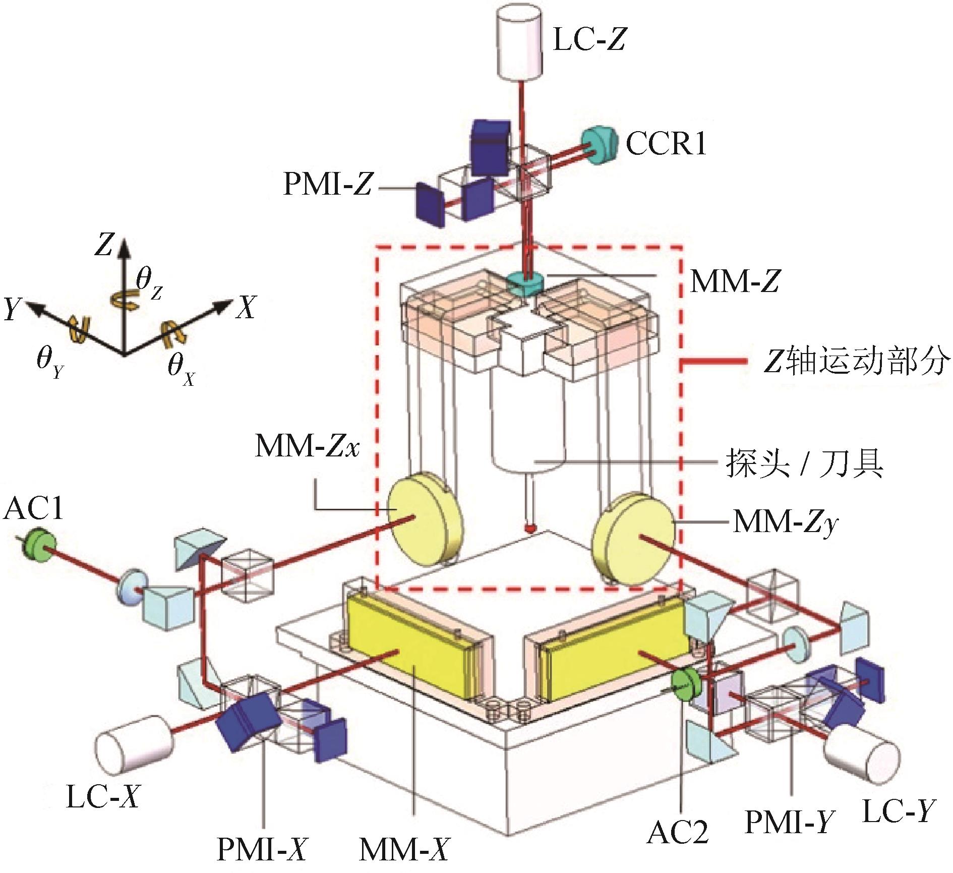 摘要:目前缺乏具备通用性且便于集成的微纳米三坐标测量机Z轴六自由度误差在线测量与补偿方案,为解决此问题,本研究团队提出基于激光干涉和自准直原理的Z轴直线和角度误差同步测量方法,基于阿贝原则与布莱恩原则建立Z轴六自由度误差补偿模型,研制相应的高精度紧凑型在线六自由度误差测量系统,并将该系统应用于微纳米三坐标测量机中。对标称厚度为8 mm的0级量块进行测量,结果显示:误差补偿后,量块厚度测量结果的标准差与示值误差分别降低了54.6%与54.3%。研究成果为提高三坐标测量机测量准确性提供了有力支撑。