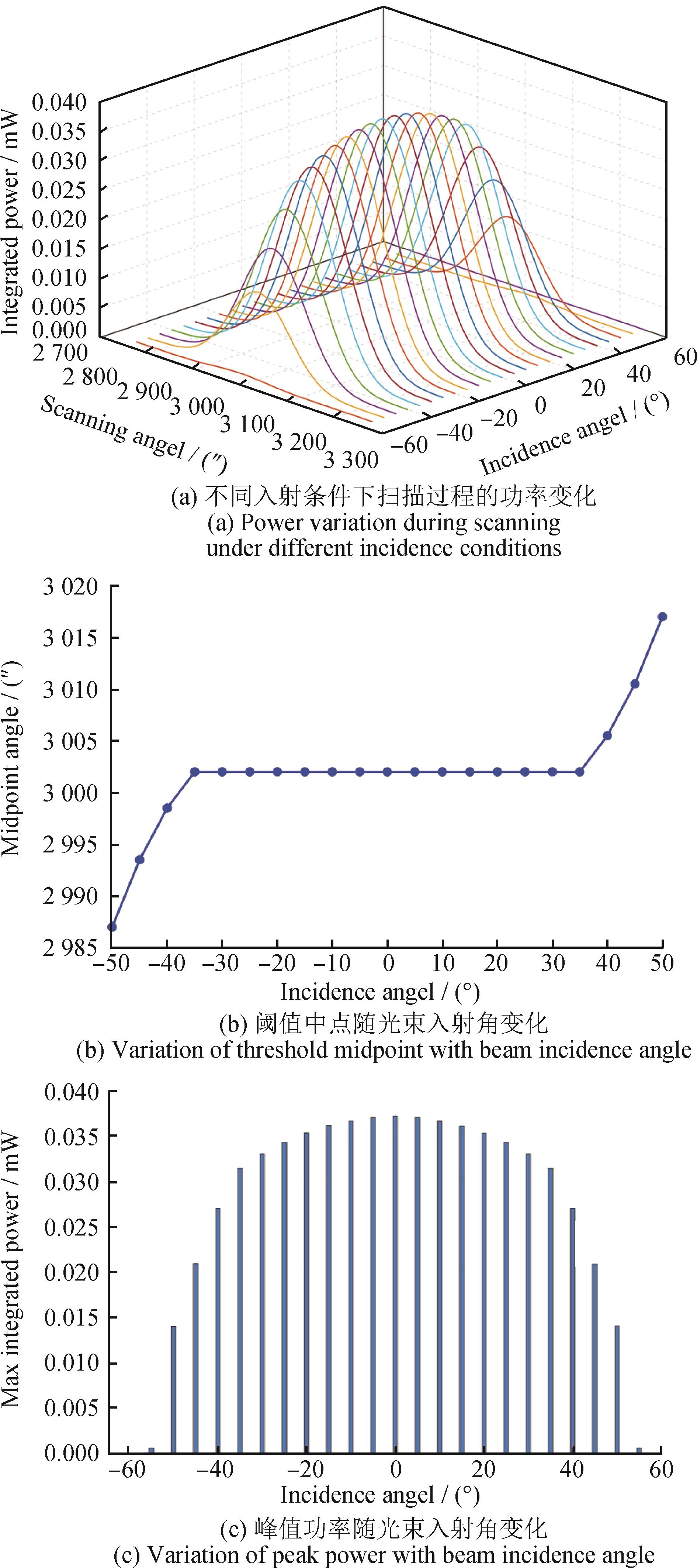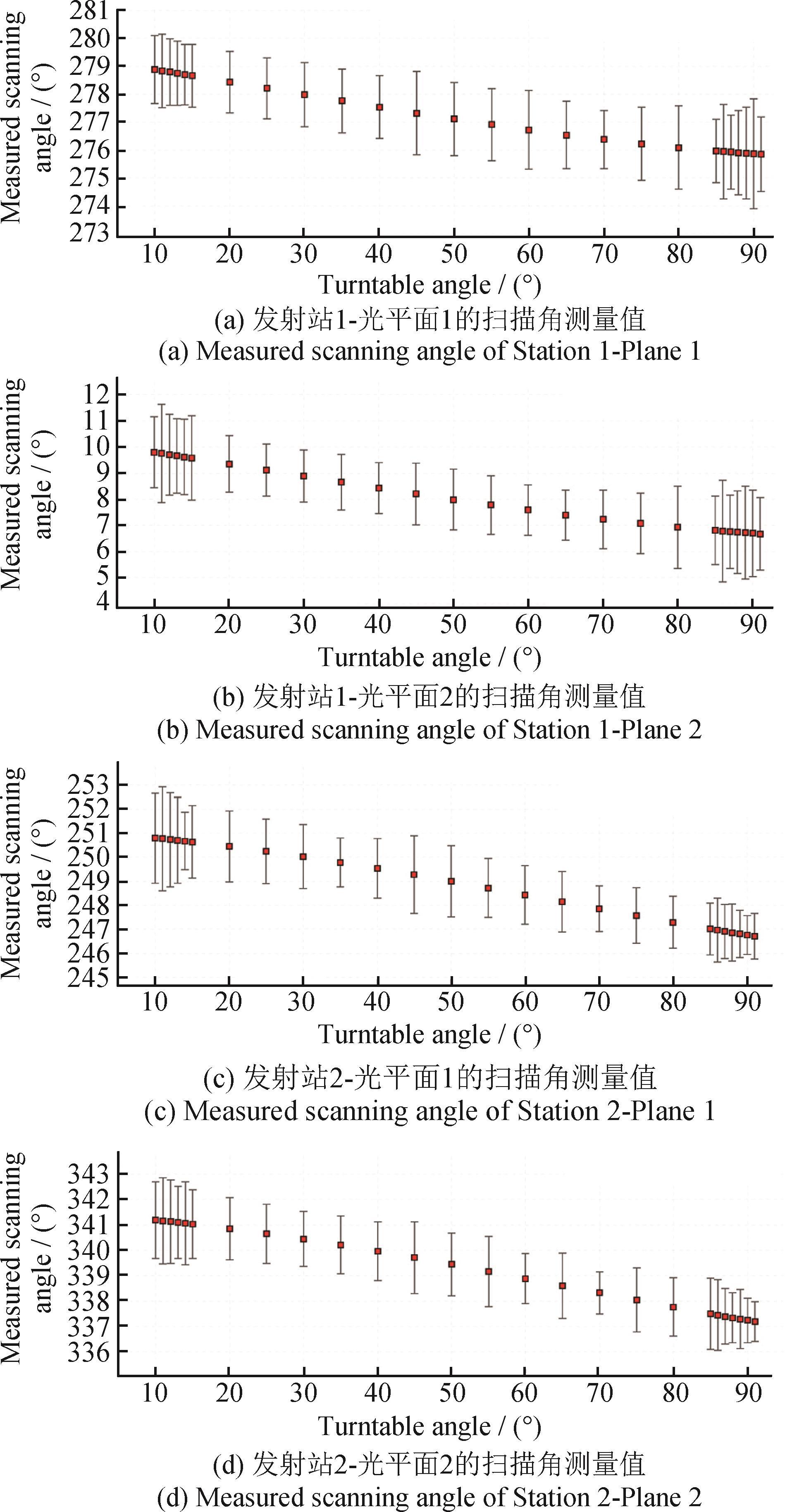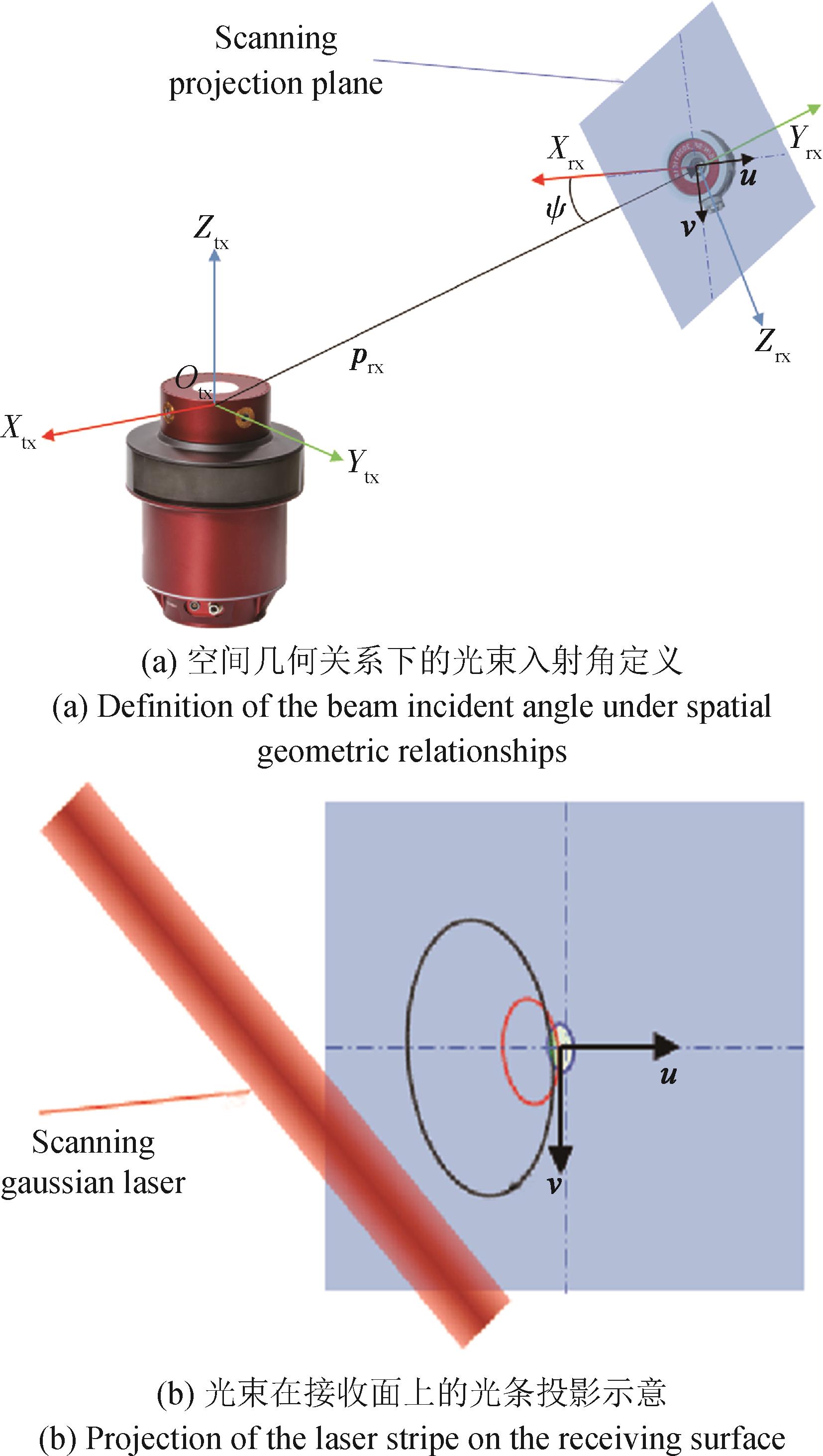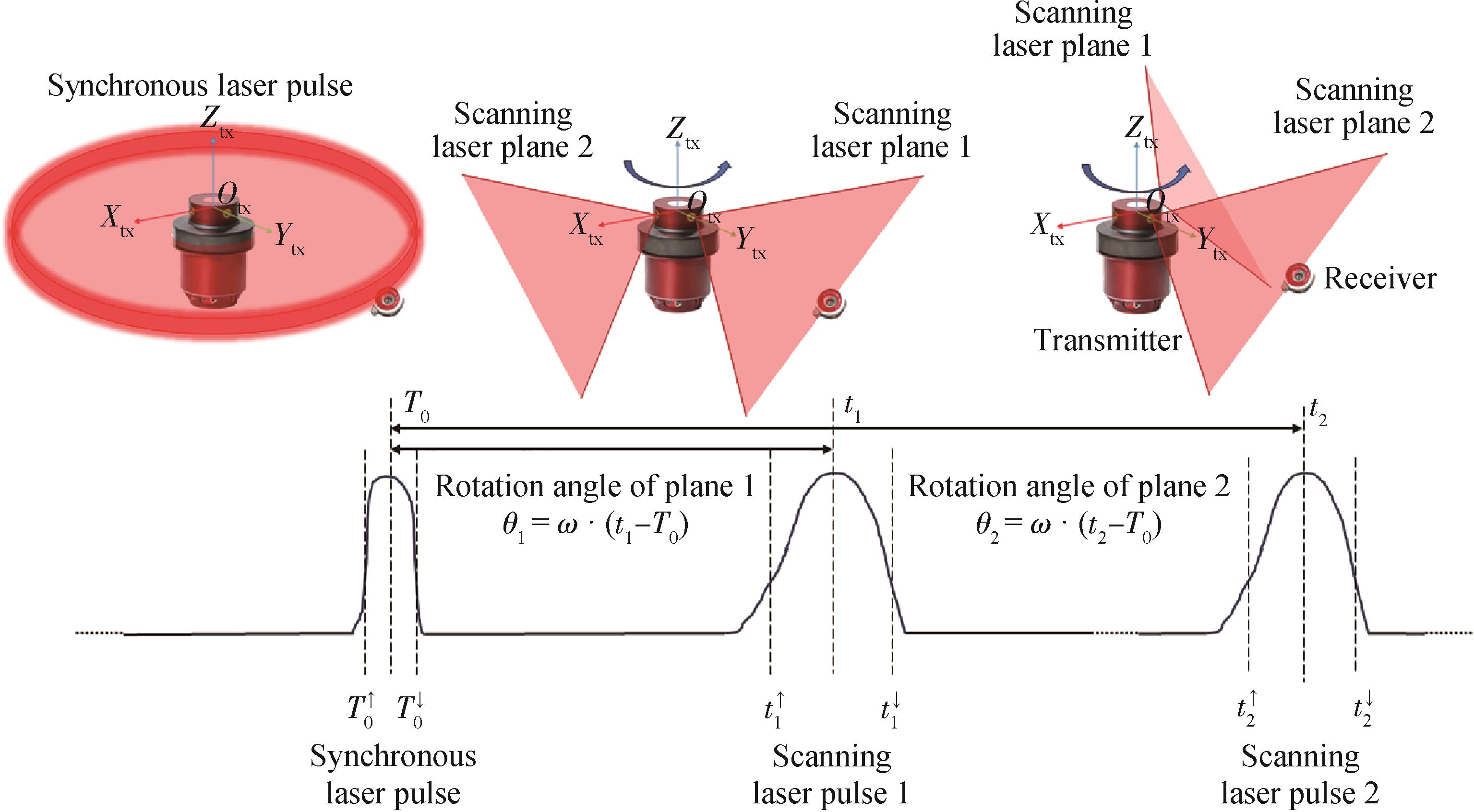 摘要:旋转激光扫描测角系统接收器姿态变化导致的光束入射角变化会引入系统性测角误差,影响系统精度与鲁棒性。为解决该问题,基于光束传播几何关系与接收器结构特性,建立局部投影模型和高斯光条分布模型,分析不同入射角条件下的光电响应差异,结合惯性测量单元提供的姿态信息,构建接收器坐标系下的有效接收面模型,提出考虑接收器结构特性的误差补偿方法。仿真结果表明:随着入射角增加,接收器的光电响应波形呈现出明显的非对称性,测角误差可达数十角秒;本文提出的补偿方法能够有效修正该误差,使均方根降低约90%。精密转台实验结果表明:补偿后接收器轨迹的圆度误差由0.81 mm减小至0.17 mm,验证了补偿模型的有效性。研究成果丰富了旋转激光扫描系统的误差建模理论,为提升接收器姿态变化条件下的测量精度和稳定性提供了有效途径。