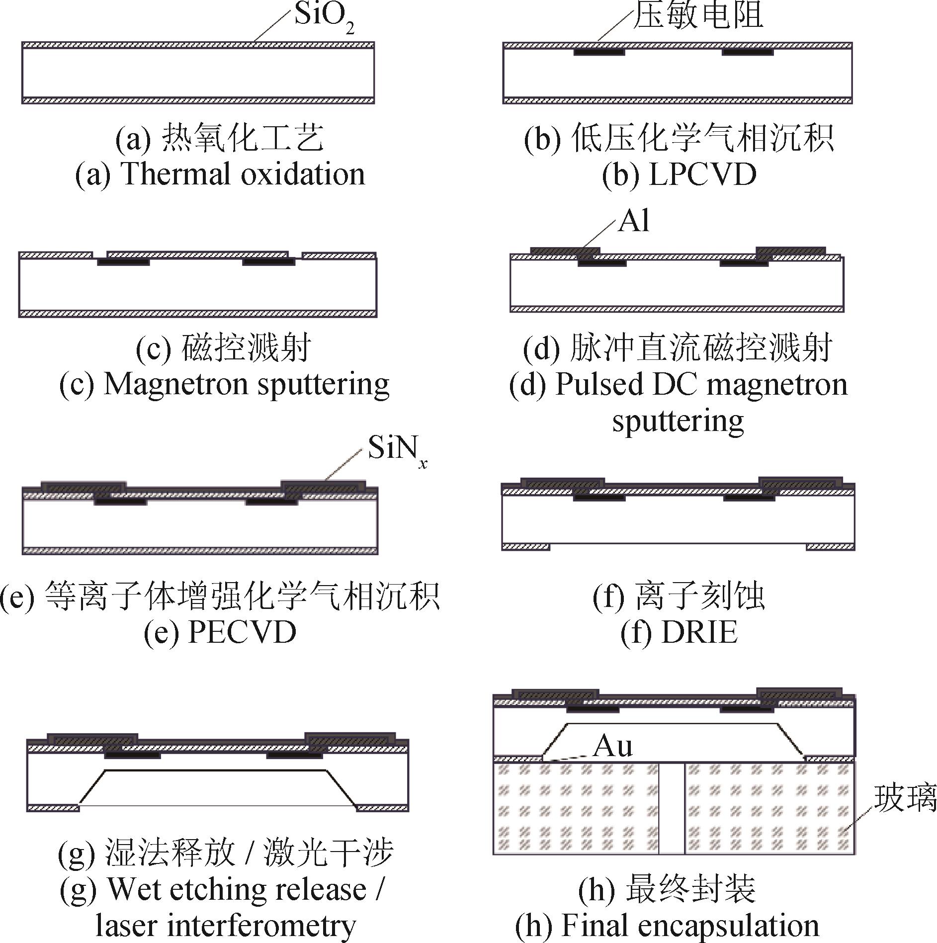 Abstract:To meet the stringent requirements for high accuracy, wide dynamic range, and rapid response of pressure sensors under the complex operating conditions of high?speed train traction and braking systems, this study presents the design, fabrication, and multiphysics optimization of a high?performance piezoresistive pressure sensor chip. By emplo?ying multiphysics coupling modeling theory in combination with a structural parameter optimization approach, this study systematically investigates the synergistic influence of diaphragm thickness, piezoresistor layout, and doping concentration on sensor performance, and proposes a parameterization?based stiffness?sensitivity co?optimization strategy for the diaphragm. Furthermore, by developing an eight?mask photolithography process and a composite wet etching technique based on KOH / IPA, a submicron?level control accuracy of diaphragm thickness was achieved. Finite element simulation results demonstrate a sensitivity of 56.987 mV / kPa, a nonlinearity of 0.048% FS, and structural stability under 300% overpressure. This work addresses a key technological bottleneck in high?accuracy pressure sensor fabrication and lays the foundation for fully localized production of safety?critical sensing components in next?generation traction systems for high?speed train.